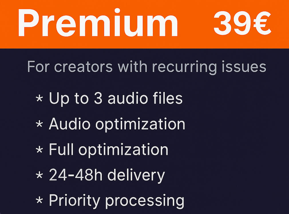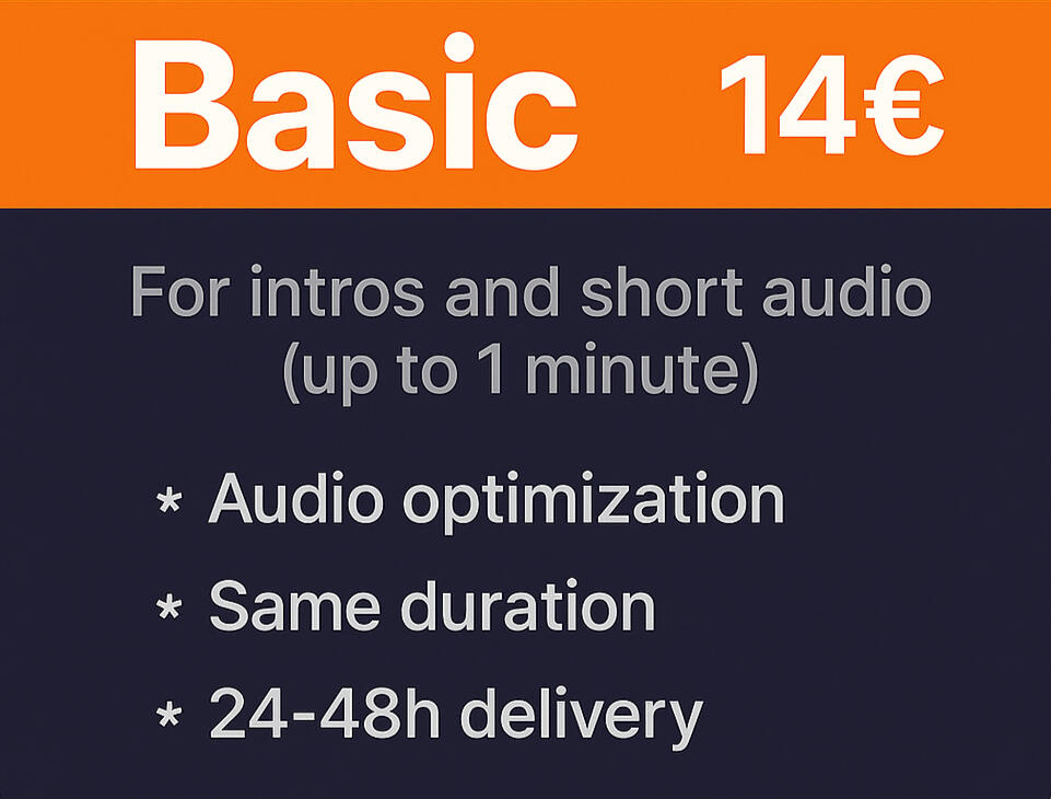 We will optimize your audio and deliver the final file within 24–48 hours.